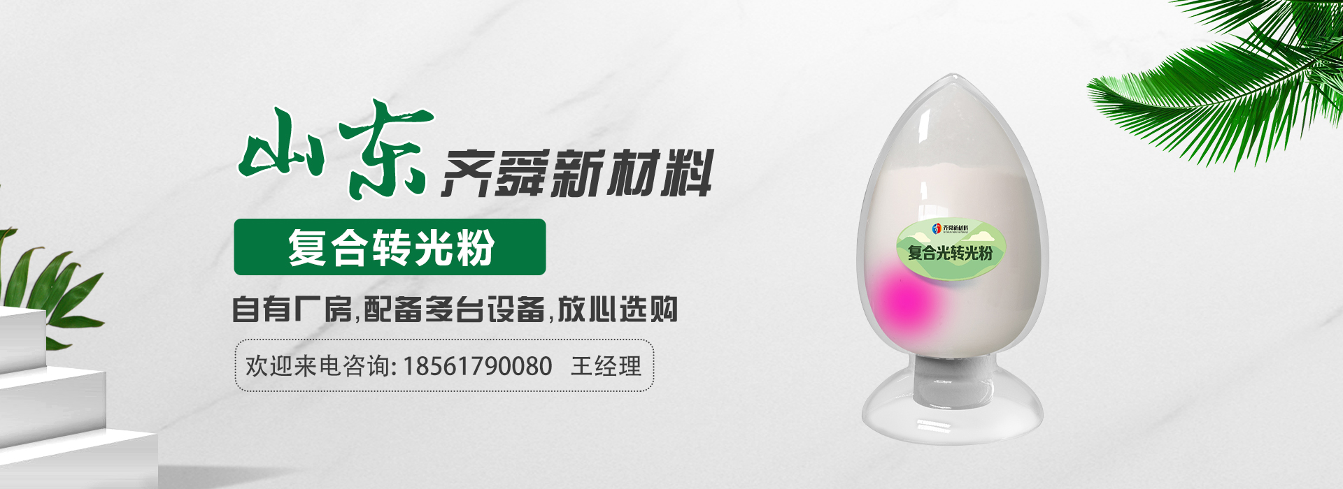 我公司前身為2011年成立的淄博舜明熒光科技有限公司。隨著公司的發(fā)展,廠址從淄博搬遷到青島,2020年5月公司重新注冊為山東齊舜新材料有限公司。公司注冊資本2000萬元,主要從事新材料研究和開發(fā)。目前主要產(chǎn)品包括:農(nóng)膜用轉(zhuǎn)光粉、轉(zhuǎn)光母粒以及轉(zhuǎn)光農(nóng)膜;農(nóng)膜用長效防霧流滴涂覆液;復(fù)合肥添加劑及葉面肥(稀土微肥);防偽粉;LED封裝熒光粉;夜光粉;太陽能光伏電池增效熒光粉;鋰電池正極材料等。